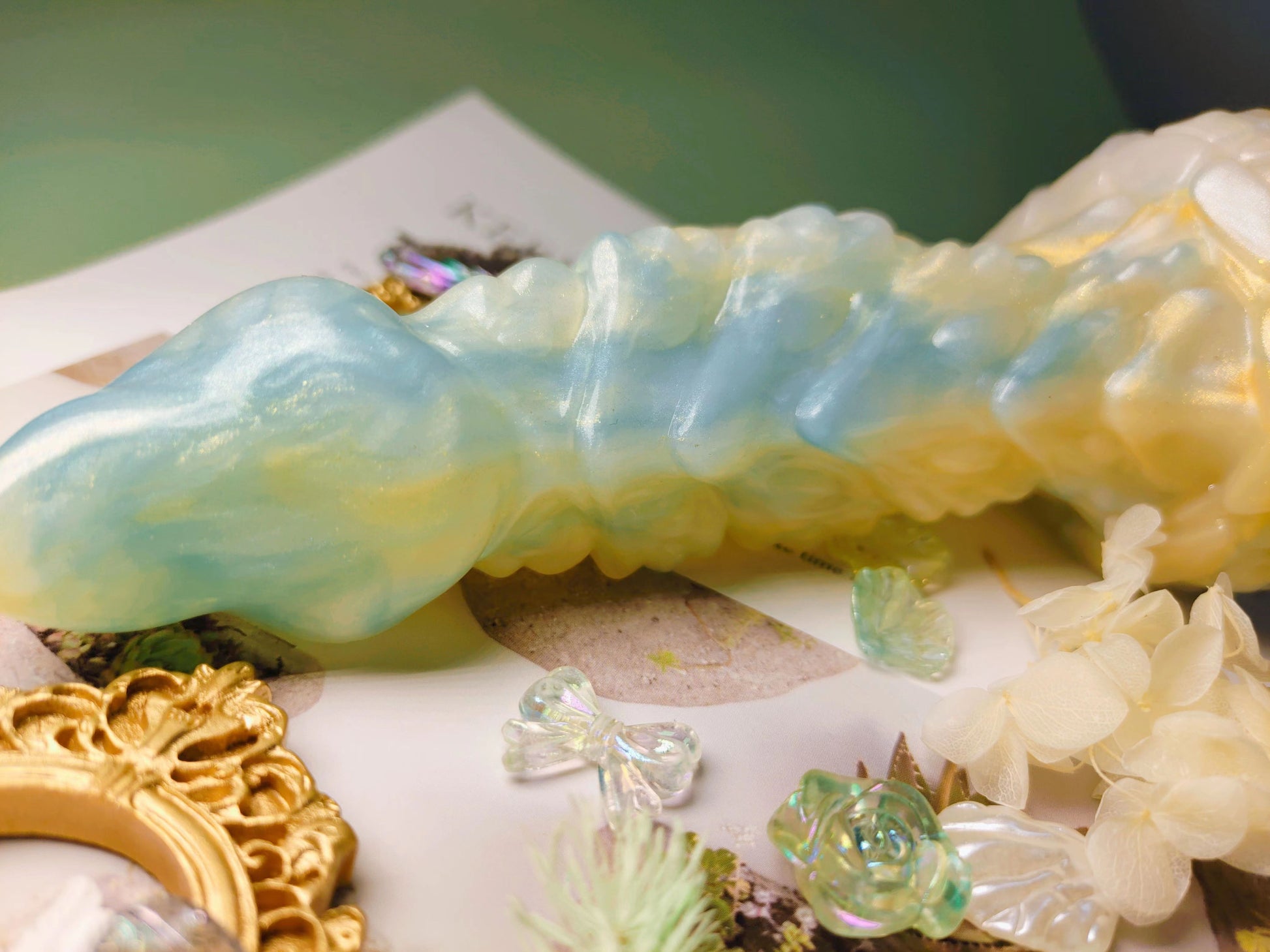 If you're into those dreamy, sparkly, crystal-clear colors, they usually need to be made in Near Clear silicone. NC toys only come in Soft firmness, so keep that in mind when picking your firmness.